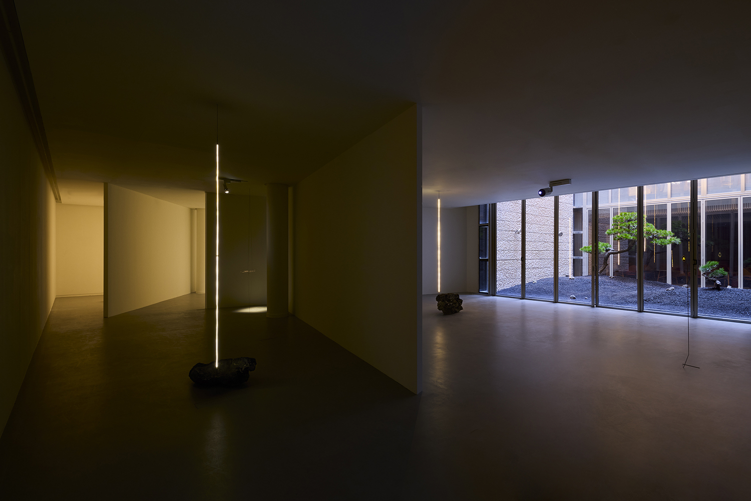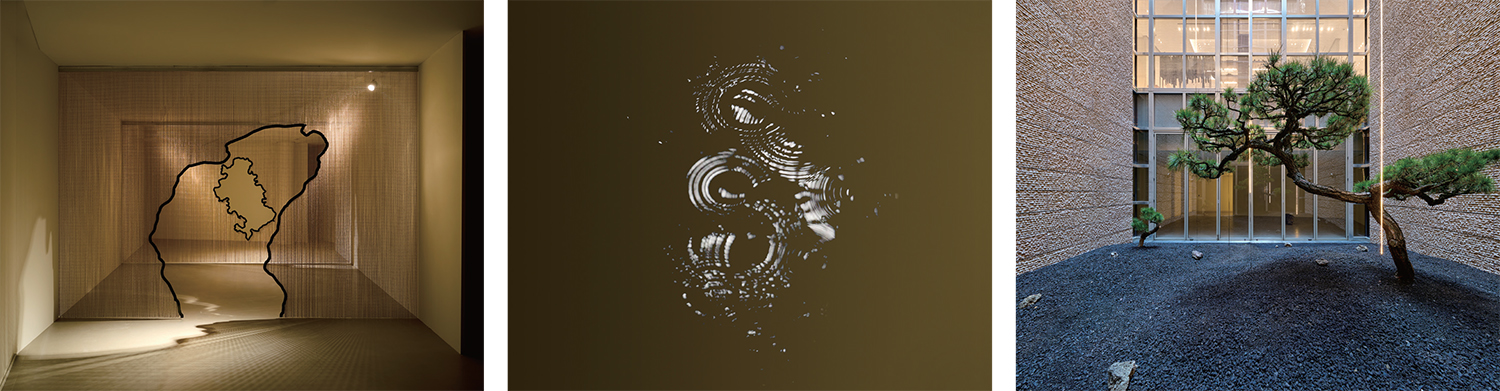 Àü½Ã ÈĹݺο¡´Â ¿ÜºÎ ¼³Ä¡ ÀÛ¾÷ ¡®¹ø°³Ä¡´Â Á¤¿ø¡¯(2025)ÀÌ µîÀåÇÑ´Ù. ÁßÁ¤¿¡ ¼³Ä¡µÈ ½ÇÁ¦ ¼Ò³ª¹« Á¤¿øÀº µÎ ±×·çÀÇ Çѱ¹ ¼Ò³ª¹«°¡ °ËÀº È­»ê¼®À¸·Î µ¤ÀÎ ±¸¸ª À§¿¡ ¹èÄ¡µÇ¾î ÀÖÀ¸¸ç, ±× À§·Î ¹ø°³ ÀåÄ¡°¡ ÀÛµ¿ÇÑ´Ù. ÁÖº¯ÀÇ ÀΰøÀû Àç·á¿Í ´ëºñµÇ´Â ºñÇö½ÇÀû dz°æÀº Àü½Ã Àü¹ÝÀ» °üÅëÇÏ´Â °¨°¢Àû ±¸¼ºÀÇ Á¤Á¡À» ÀÌ·ç¸ç, ÇöÀçÀÇ ½Ã°£°ú °ú°ÅÀÇ ½Ã°£, µµ½ÃÀÇ °ø°£°ú ¿ìÁÖÀû °ø°£ÀÌ °áÇÕµÈ ÀÚ¿¬ÀÇ ¹«ÇÑÇÔÀ» µå·¯³½´Ù. À¯¸®Ã¢ ³Ê¸Ó »ó¿µµÇ´Â ºñµð¿À ÀÛ¾÷ ¡®¹°°í±â¿Í ÀÔ¸ÂÃß´Â ´Þ¡¯(2025)Àº °æÁÖ ¿ùÁö¿¡¼­ ÃÔ¿µµÈ ¿µ»óÀ¸·Î, ¹° À§·Î ºñÄ£ ´Þ°ú ¹°¼ÓÀ» À¯¿µÇÏ´Â ¹°°í±â°¡ ¸¸³ª´Â Àå¸éÀ» ½ÃÀûÀ¸·Î ´ã¾Æ³Â´Ù. ¼­·Î ´êÀ» ¼ö ¾ø´Â µÎ Á¸Àç°¡ Á¢¼ÓÇÏ´Â Àå¸éÀº ¡®¹ø°³Ä¡´Â Á¤¿ø¡¯°ú Áö¼öȭdz(ò¢â©ûýù¦)ÀÇ ¿ìÁÖ¸¦ ±¸¼ºÇϸç Àü½Ã °æÇèÀÇ °¨°¢Àû ¾ôÈûÀ» ¸¶¹«¸®ÇÑ´Ù.