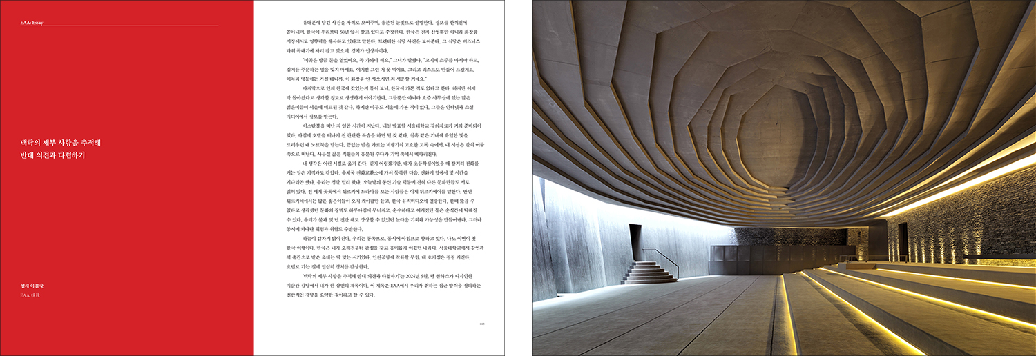 ÀÌ »õ·Î¿î ¹æÇâ¿¡¼ ù ¹øÂ° °¿¬ÀÚ·Î Áß±¹ °ÇÃà°¡ ¸®¿ìÁö¾ÆÄïÀ» ¼±Á¤ÇØ °¿¬À» ¿°í ¼¿ï´ë-¸ñõ °¿¬ÀÇ Ã¹ ¹øÂ° Ã¥À» Ãâ°£Çß´Ù. ÀÌ¾î¼ º£Æ®³²ÀÇ Æ®·ÎÇÇÄà ½ºÆäÀ̽º¿Í H&P ¾ÆÅ°ÅØÃ÷ÀÇ °¿¬À» ¿°í µÎ ¹øÂ° Ã¥À» Ãâ°£Çß´Ù. ¼¼ ¹øÂ° Ã¥Àº Æ¢¸£Å°¿¹ °ÇÃà°¡¸¦ ÁÖ¸ñÇÑ´Ù. 2024³â¿¡ À̽ºÅººÒÀ» ±â¹ÝÀ¸·Î Ȱµ¿ÇÏ´Â µÎ °ÇÃà»ç¹«¼Ò EAA¿Í SO?¸¦ ÃÊÃ»ÇØ °¿¬À» ÁÖÃÖÇß´Ù.